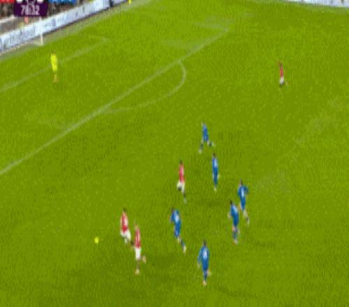第79分钟,伯恩茅斯后卫解围失误,库尼亚禁区捡漏低射破门,曼联4-3伯恩茅斯。