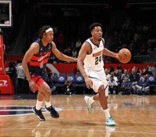 掘金过去两场连续主场输给黄蜂与湖人遭遇2连败,奇才过去7场遭遇7连败,本赛季首次交锋掘金主场121-115险胜奇才。本场掘金缺少约基奇、卡约、布劳恩,奇才缺少特雷-杨、巴格利等。首节开局掘金11-5领先,奇才连追5分,奇才多点开花扩大19-10领先,并在之后维持23-13领先优势。奇才回敬一波10-4攻势追分,首节结束掘金27-23领先奇才。首节掘金19中7,其中三分7中2,戈登8分、瓦兰8分与沃特森7+5+2,穆雷2中0得到0分。奇才26中8,其中三分16中5,卡林顿8分与乔治7+5。