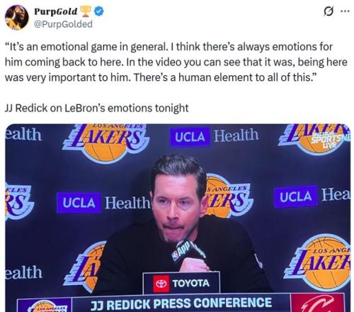 赛后雷迪克坦言:“篮球本身就是一项充满情绪化的运动,我想对他来说,每一次回到这里都会百感交集,从致敬视频的反应不难看出这一点,很明显,对于他来说,重回这里意义非凡,这一切都包含着人性因素。”