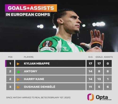 在本赛季欧联杯联赛阶段,安东尼场均接近制造1球,这种恐怖的效率让他成为了名副其实的“西甲小王”。今晚的比赛,他更是凭借这传射建功,让贝蒂斯成为了西甲在欧战中的遮羞布。