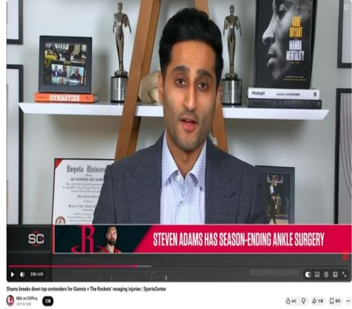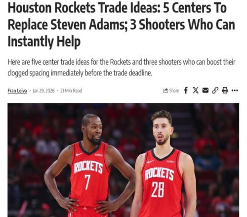 消息来自于ESPN权威名记Shams,他在节目中谈及亚当斯赛季报销后火箭队在交易截止日前的计划与想法。