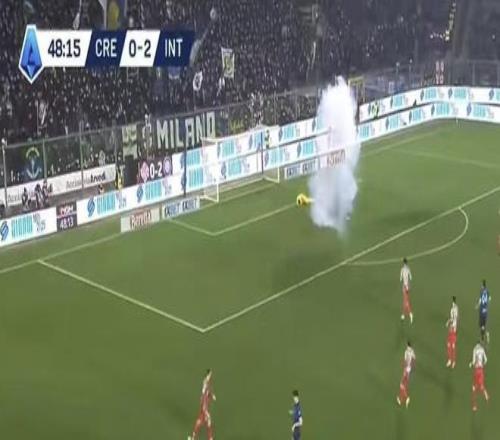 比赛第49分钟,国际米兰左路迪马尔科持球准备进攻,突然一片烟雾出现在屏幕上方,克雷莫内塞门将奥代罗痛苦到底。当时狗哥和所有国米球迷的想法应该是一样的——要坏,这边儿看台可都是国米球迷,一旦奥代罗受伤严重,极有可能比赛会被立即终止,这对于一直掌控比赛的国际米兰来说,徒增变数,绝对不是好事。