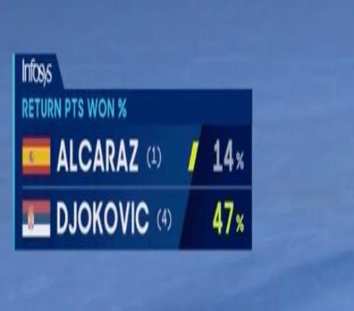 第二盘,双方先是各自保发。到了第三局,阿卡放弃了大开大合的强攻,而是选择更为谨慎的打法,时而放慢球速,最终成功破发,2-1。由于第一盘消耗了较大体力,这一盘德约的体力槽明显有些不足,第四局没打完非受迫性失误就已经7个了。第7局,阿尔卡拉斯实现了本盘的二度破发,随后又把握住了自己的发球胜盘局,6-2!阿尔卡拉斯扳回一城!